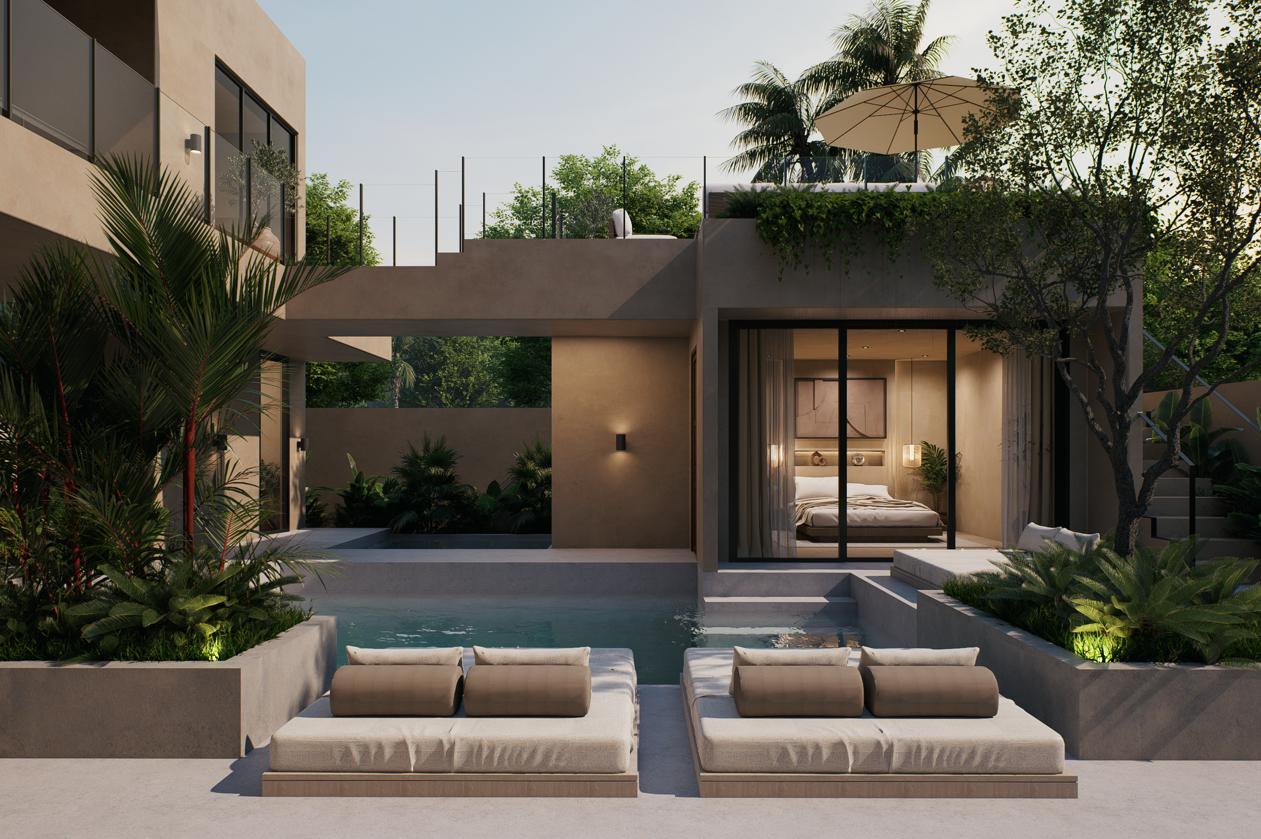 High-end villas, designed in a Japanese-Mediterranean style with a focus on timeless architecture and luxury living.
